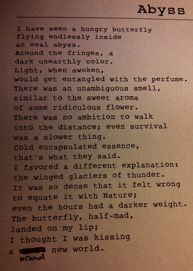 abyss Contemporary Poetry Share this: Click to share on Reddit (Opens in new window) Reddit Click to share on Facebook (Opens in new window) Facebook Click to share on Tumblr (Opens in new window) Tumblr Click to share on X (Opens in new window) X Click to share on Pinterest (Opens in new window) Pinterest Like Loading...