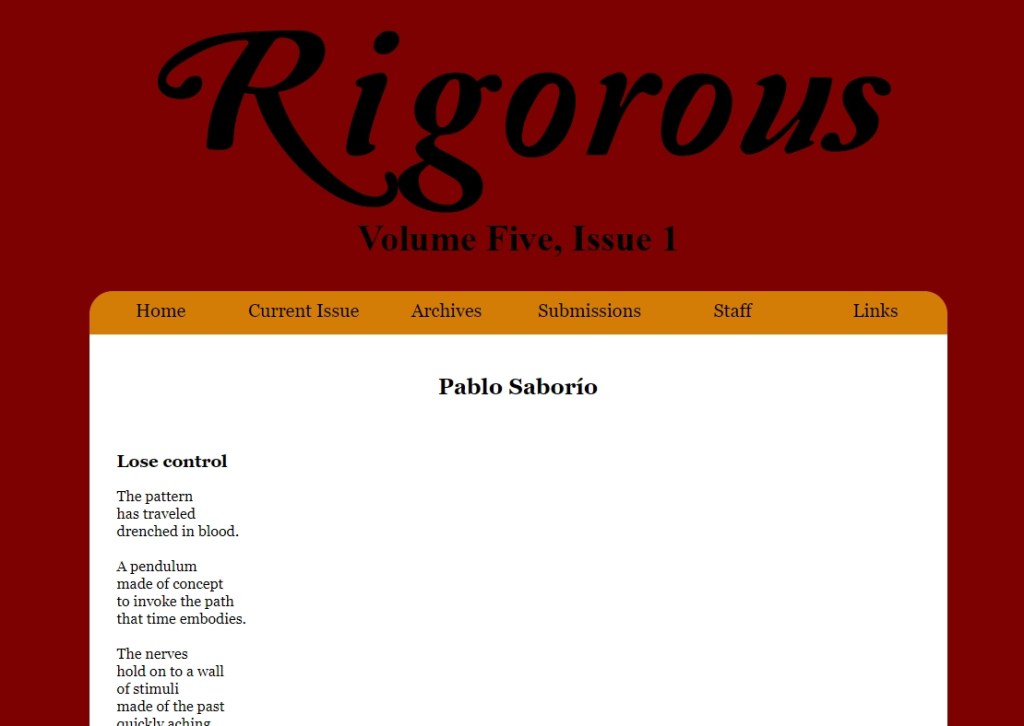 Proud to have two poems published in the latest issue of Rigorous.